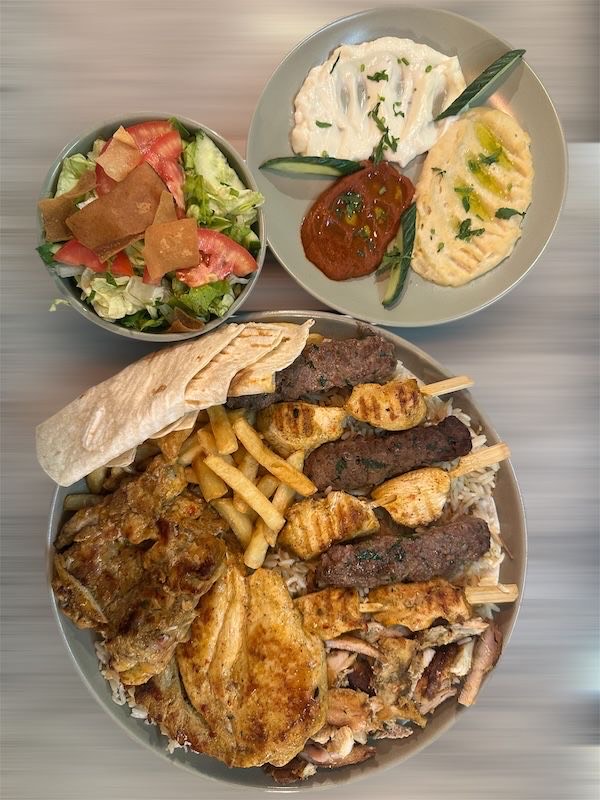 3 Chich taouk, 3 Kabeb, 3 Chawarma, 1 Demi poulet désossé